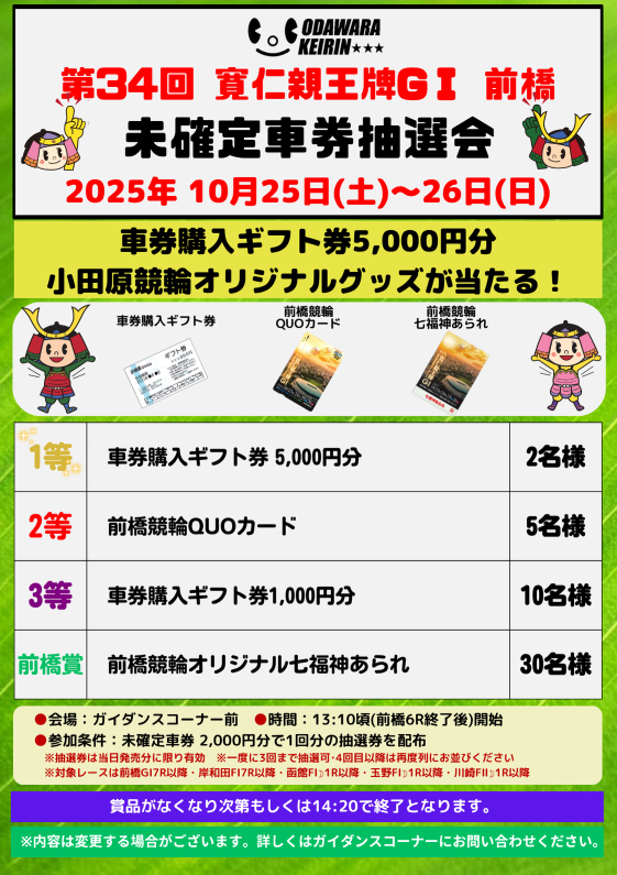 ●未確定車券ガラポン抽選会♪(10月25日・26日)