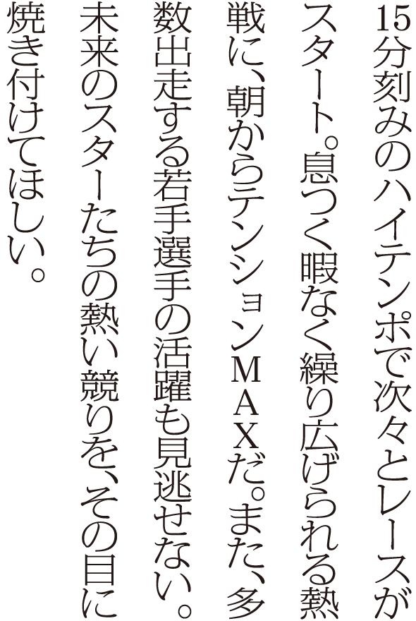 自分の好みにあった時間帯でレースを楽しむことができます。